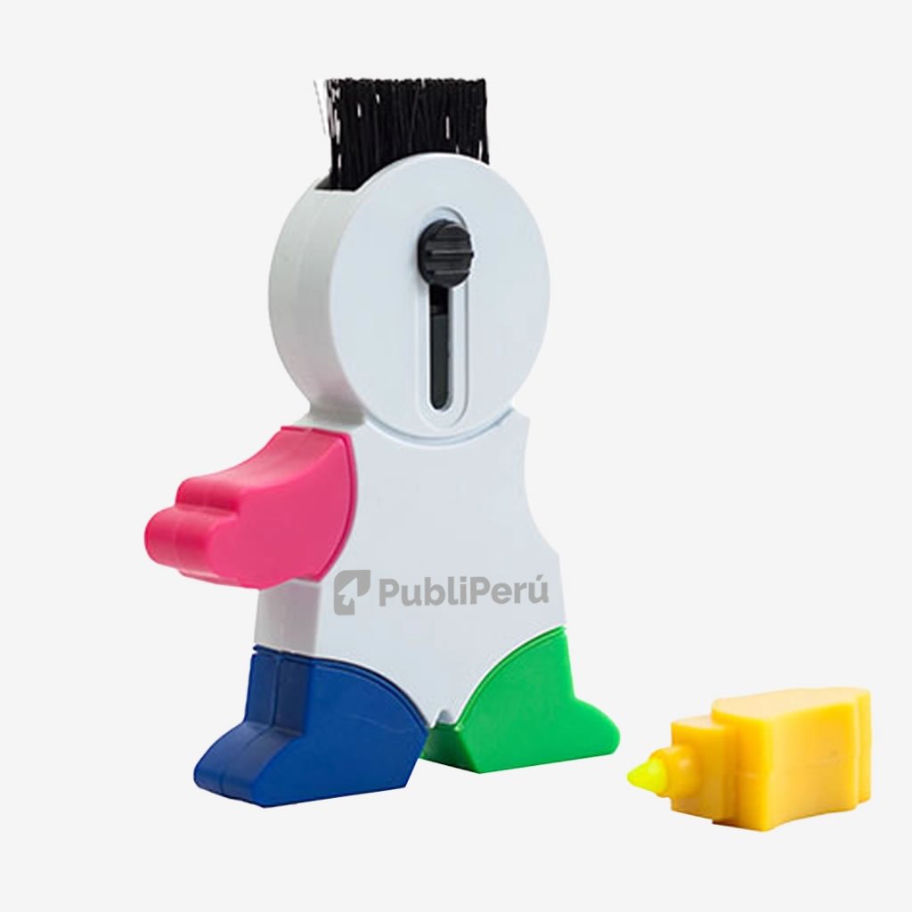 - Descripción: Resaltador forma de muñeco con limpiador de teclado, con 4 puntas en color verde, fucsia, amarillo y azul.