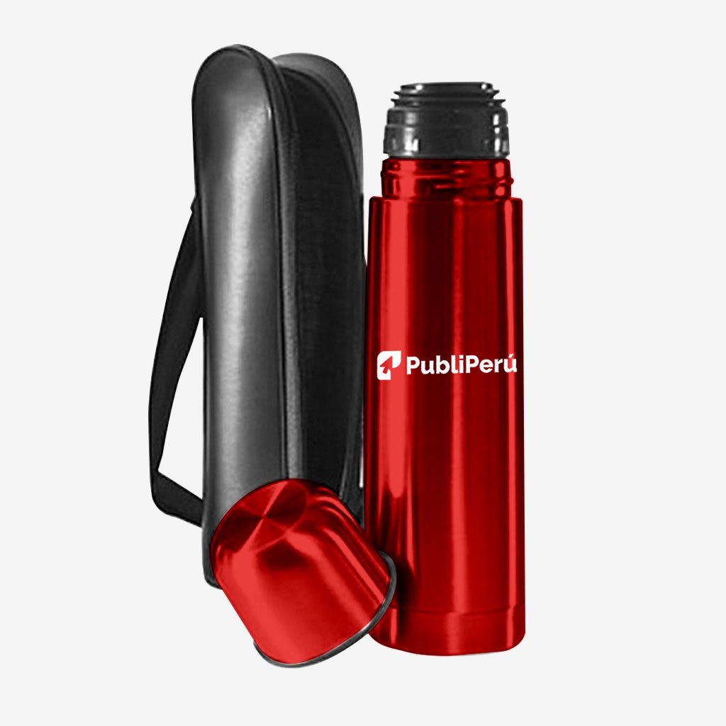 - Descripción: Termo metálico de 1/2 litro Aprox. de capacidad, con funda negra para llevar.